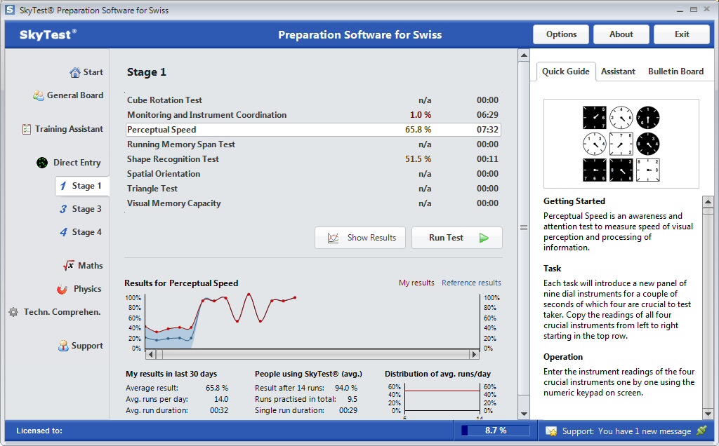 SkyTest® Preparation Software for Swiss 3 accommodates several features to support training experience and outcome. The software is bilingual (English and German) – you may switch between the languages any time.